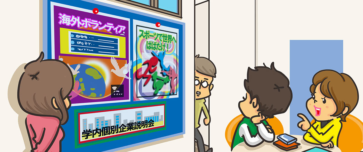業界唯一、大学キャンパス内で直接大学生に手渡し配布が認められた求人募集メディア。東海、約25大学で発行。